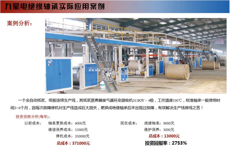 九星電絕緣軸承采用特種噴涂工藝,在軸承的外表面噴鍍優(yōu)質(zhì)覆膜,覆膜與基體結(jié)合力強(qiáng),絕緣性能好,可避免感應(yīng)電流對(duì)軸承的電蝕作用,防止電流對(duì)潤滑脂和滾動(dòng)體、滾道造成的損壞,提高軸承的使用壽命.而比起其他絕緣方式如軸外殼絕緣等,更加符合經(jīng)濟(jì)效益和可靠!