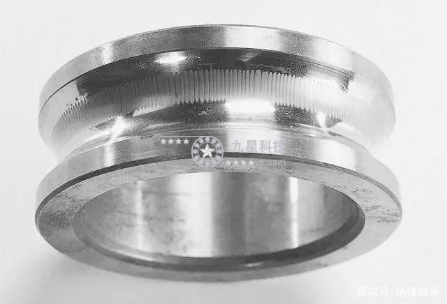 所謂的電蝕溝痕是指滾道面在運轉方向上有連續(xù)的周期性溝痕。這類現(xiàn)象大多是由于軸承通過電流所導致,