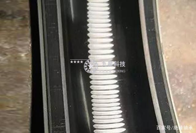 答:為了避免軸電流對軸承的灼傷損害,應采取有效措施隔絕軸電流。對于兩端利用獨立軸承座的大型電機,可以軸承座與金屬底座之間放置絕緣材料做成的隔離墊片。對于普通的軸承與機殼組裝成一體的電機,則一般是在電機的一端(常安裝在非主軸伸端)使用絕緣軸承,對于要求較高的場合,兩端均安裝絕緣軸承。所使用的絕緣軸承一般為外圈附加(一般為涂覆)絕緣層的辦法,個別場合也會使用內(nèi)外圈均附加絕緣導的絕緣軸承。