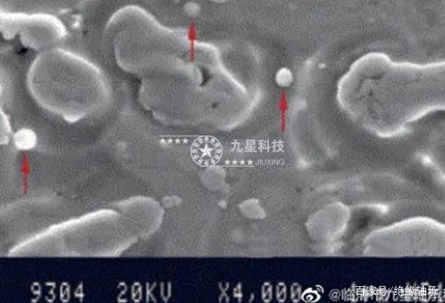 只有通過掃描電子顯微鏡(SEM),我們才會明顯的看到幾乎所有的損傷表面都密布著凹坑和μm級的焊點(如圖),這也證實了有電流通過軸承。