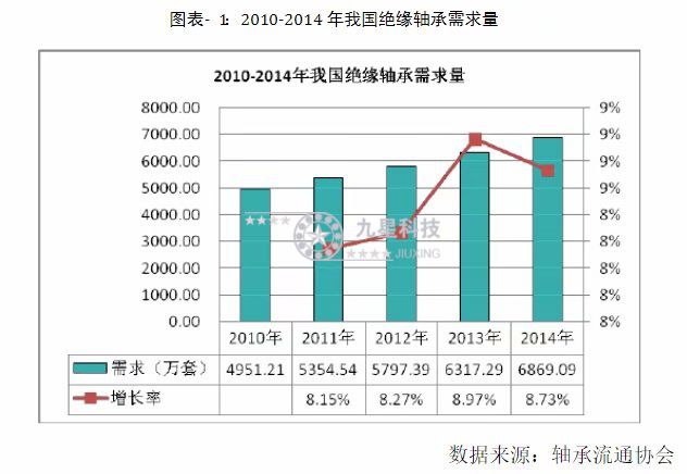 由于全球電機(jī)行業(yè)的持續(xù)發(fā)展,國際市場對絕緣軸承的需求增長較快。以下為2010-2014年國際市場絕緣軸承需求變化: